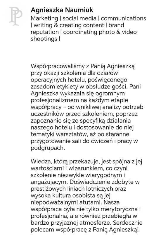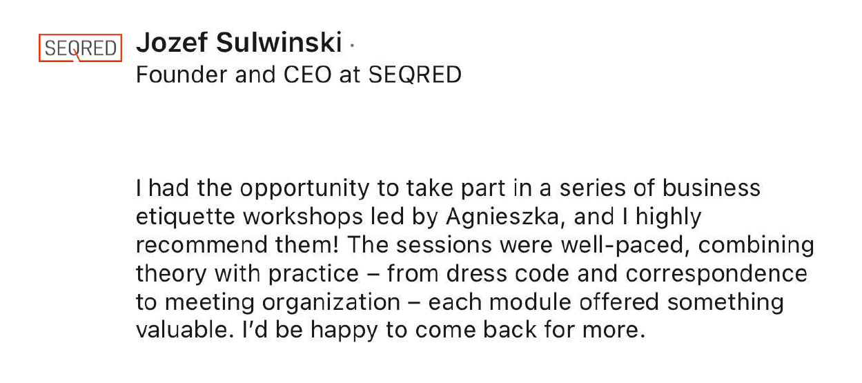 Etiquette and Savoir-Vivre ConsultantTrainer of Good MannersTrainer of Customer Service Excellence